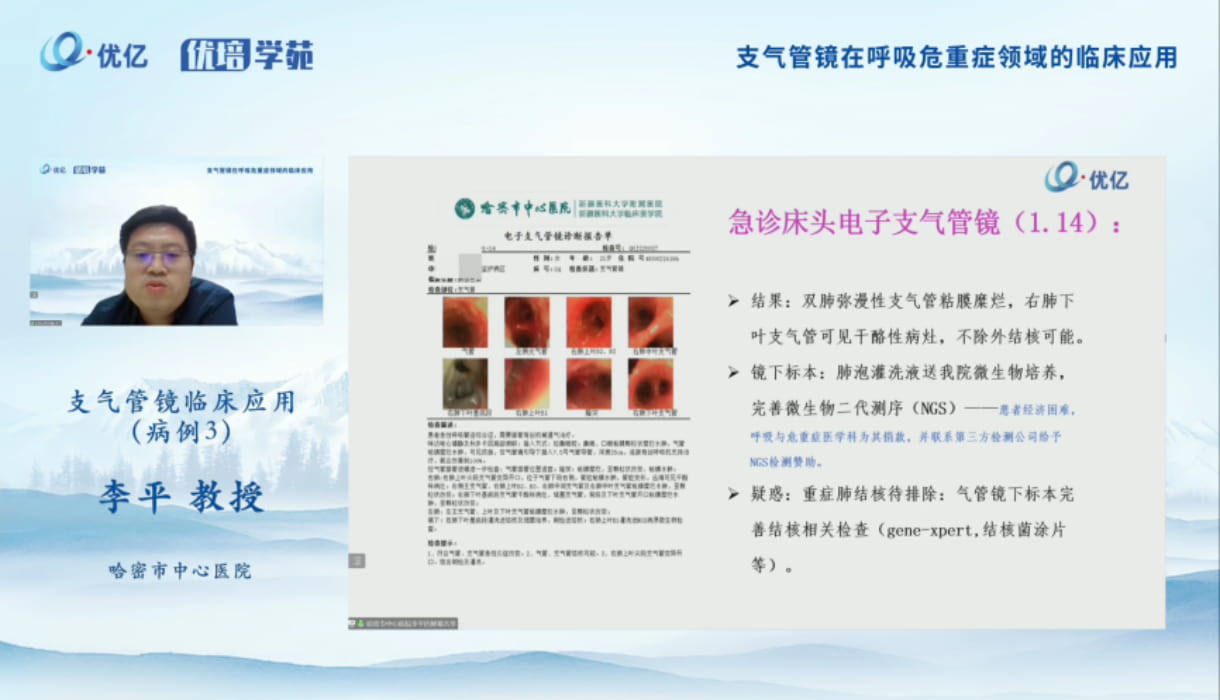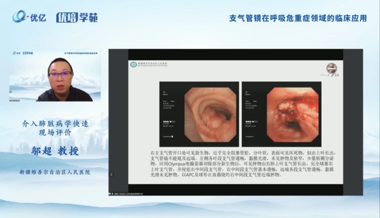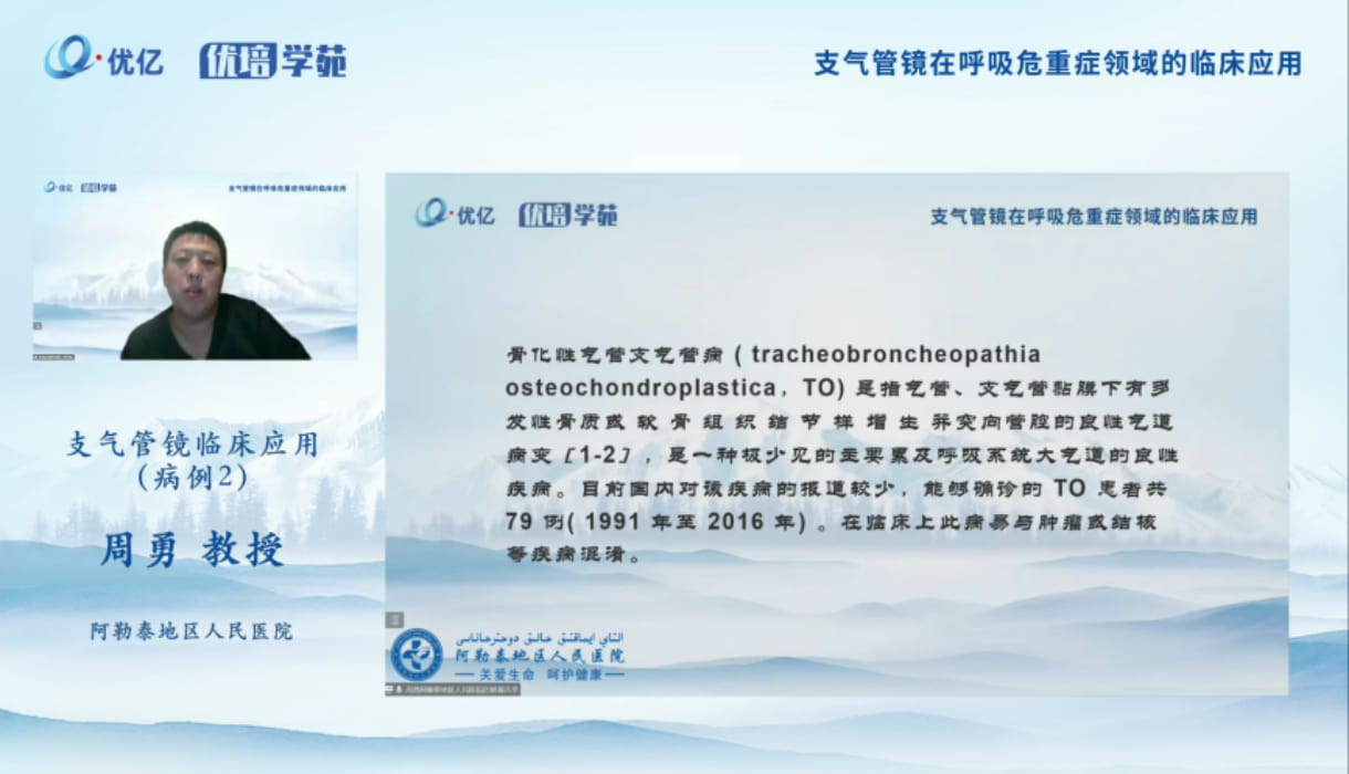 周勇教授分享了支氣管鏡在重癥肺炎患者中的應(yīng)用、支氣管鏡在氣管異物中的應(yīng)用、支氣管鏡在罕見(jiàn)病的應(yīng)用、支氣管鏡在纖維素性支氣管炎的患者中應(yīng)用等四個(gè)案例內(nèi)容。